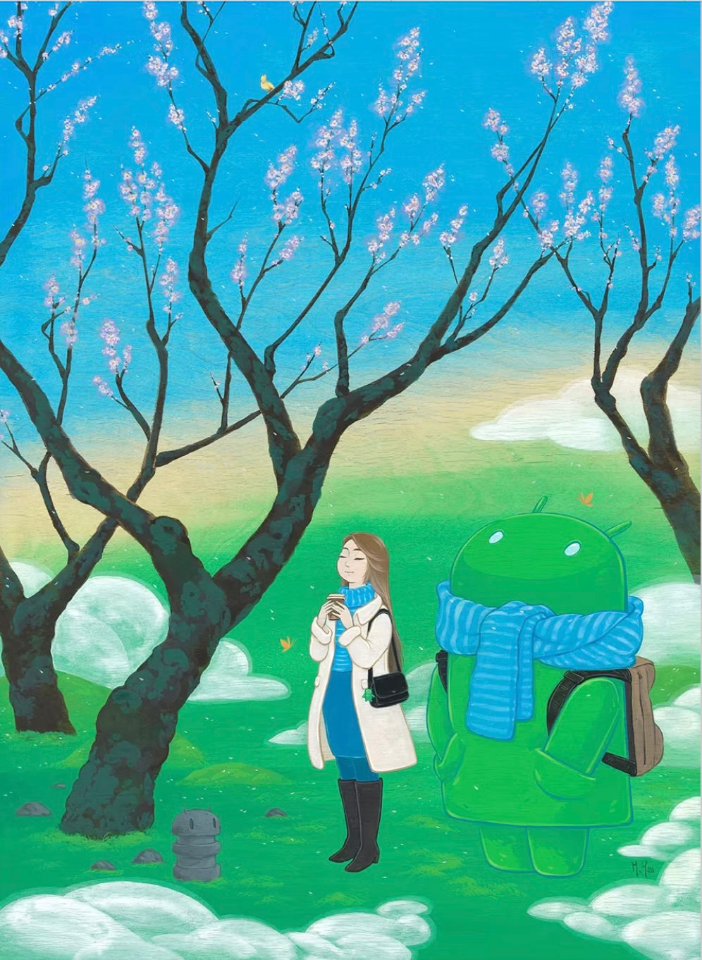 The plum blossom is the only tree that blooms in winter—a symbol of beauty and hope in the coldest season. Samantha was born soon after my father passed away, on the darkest night of the year, bringing light into one of the hardest moments of my life. When I saw that painting, it felt like a quiet whisper from the universe.